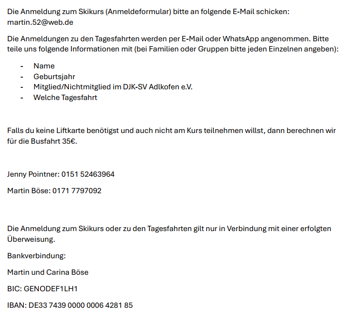 Übungsleiter Ski: Alfred Böse // Udo Nörl // Jenny Pointner // Martin Böse // Ludwig Passek