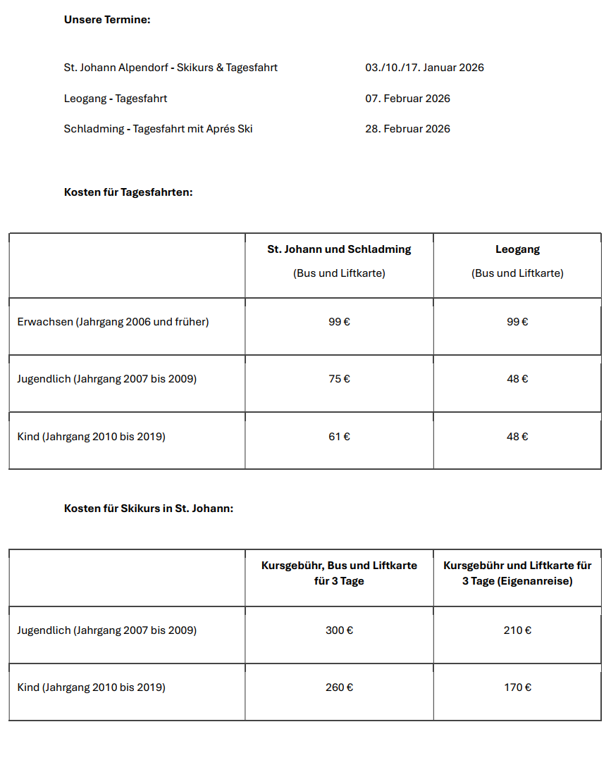 Flyer Skikurs u. Tagesfahrten 2026
